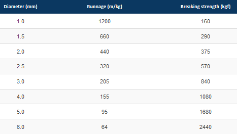 Material: Dyneema. Construction: Braided. Standard colour: White or green. Buoyancy: 0.98. Melting point: Between 144°-152° C. UV stability: Very good. Colour sortiment: White, green and black.