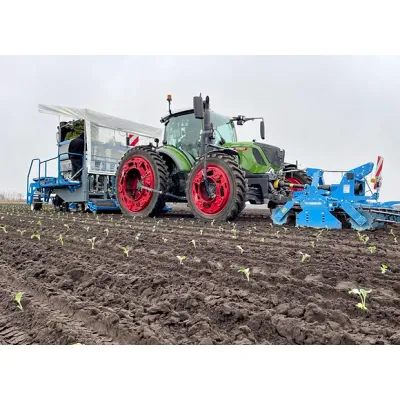 The Brassica planter, developed by TTS, is designed for efficiently planting seedlings in medium row spacing applications. Each planter utilizes multiple robotic elements for distributing seedlings, with an impressive output rate of over 5,000 plants per row per hour. It offers the flexibility to plant between 3 to 8 rows, with more rows available upon request. This machine accommodates row spaces starting from 24 inches (60 cm) and features independently floating elements that incorporate ground pressure control, enhancing its adaptability to uneven terrains. Optional camera systems can be integrated to detect and skip blanks in seedling trays, optimizing the planting process. The Brassica planter is suitable for various seedling tray dimensions and can be configured as either a towed or semi-mounted machine, making it ideal for tramlines and spray tracks. It presents a robust solution for large-scale agricultural operations focused on crops like Brassicas, ensuring high capacity and precision in planting.
