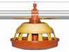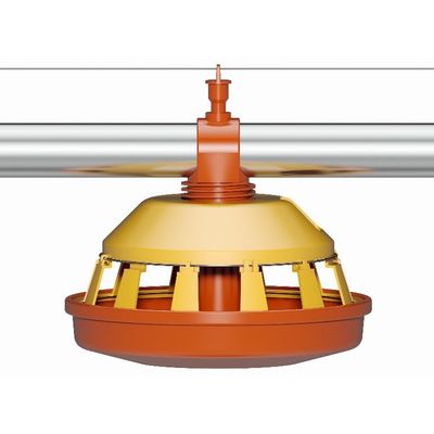 Capacity: 12 birds per feeder. For Ø 45 mm and Ø 60 mm conveyors. Simultaneous filling of the pans. Pipeline full throughout the operating time to ensure continuous and uniform distribution. Feeder fixed to the pipeline. Anti-spill ring to minimize feed losses. Reduced-size discharge joint. Grid openings adjustable to prevent male access.