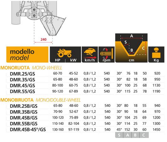 Broad movement mono-wheel, mono/double-wheel ditchers. A device for digging and maintaining ditches to the side of tractor. During transport, the doitcher is carried in avertical position. It is possible also to supply just the side-mount device, to which any type of ditcher or mower can be attached. Motion transmission is by cardan shaft.