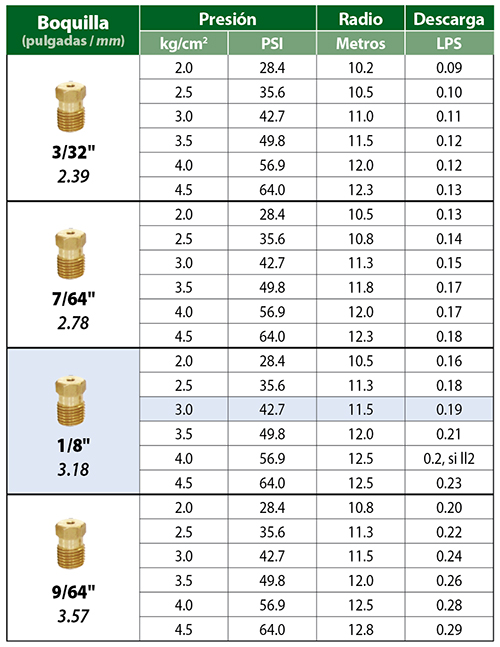 1/2" Wade Rain Bronze Sprinkler w/ nozzle 25°. 1/2" Bronze Sprinkler w/ nozzle. Inlet Size: 1/2" NPT. Operating Pressure: 2.0-2.5 kg/cm2. Trajectory: 25°. Mechanism: Spring Arm Impact. Radius Range: 10.2-12.8 M. Flow Range: 0.09-0.29 LPS. Weight: 0.224 kilograms.