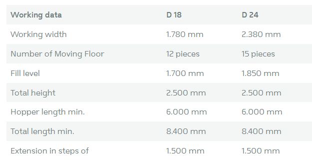D Feed and Metering Hoppers are designed for continous and even feeding of most different materials and are equipped with an electrical volume flow regulation and an MF Moving Floor Conveyor.