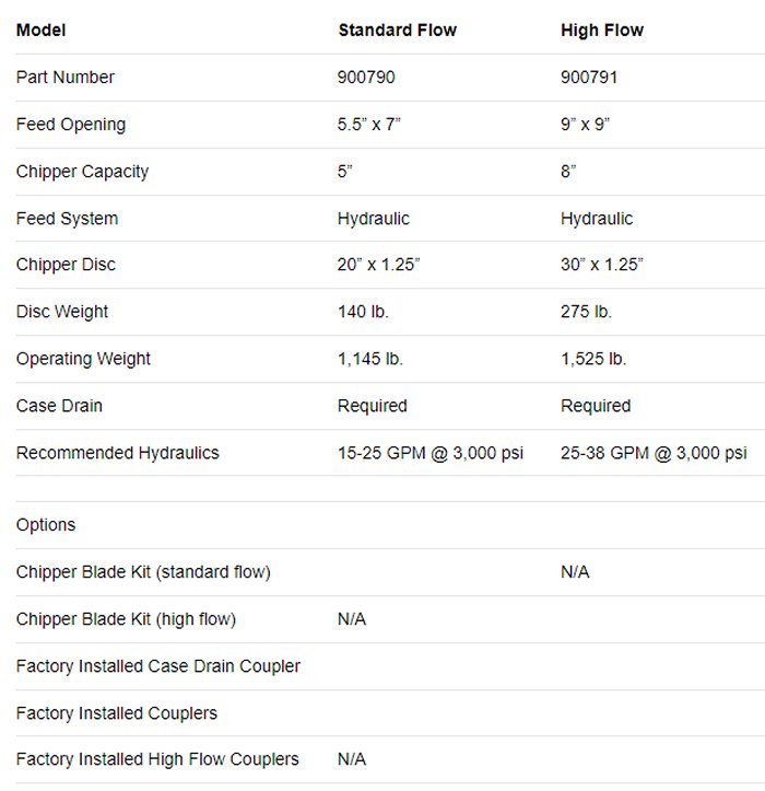 - Independent hydraulic feed system controls allows user complete control of feeding rate into the chipper