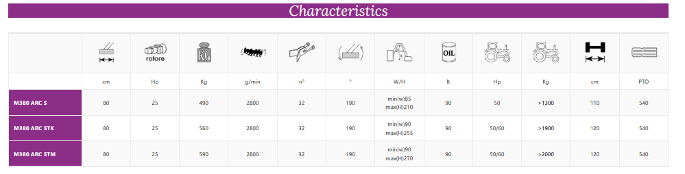 Rear range for contractors who need to climb over hedges, vineyards and irrigation system. The ARC Serie is suited to cut grass, bushes and branches (up to Ø 3 cm.). For tractors from 50 to 60 HP.