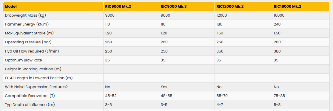 RIC is a technique allied to Dynamic Compaction that can be used to increase the bearing capacity of soils through controlled impact. This treatment is effective in the top layers of earth typically up to 6m depth, though improvements up to 9m have been seen in some conditions. A dropweight of 5 to 16 tonnes (depending on size) is dropped onto a special foot assembly 40-60 times a minute. The foot remains in contact with the ground at all times.