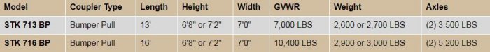 - Trailer Width: 7'0" outside width