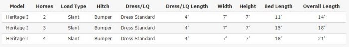 With a number of available sizes and configurations, you’re sure to love one of these all-aluminum Legend Heritage bumper pull slant loads offering the legendary strength and durability of a Jamco. Built with Jamco’s patented double-thick interlocking plank walls on the lower half and Legend light-wall interlocking planks on the upper half, the Legend Heritage offers you and your horses unequaled protection and durability. The semi-custom Legend Heritage slant loads allow for specific selection and placement of many available options and carry a five year frame warranty and ten year pro-rated warranty on plank walls.
