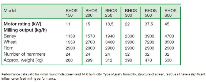 Superior by Detail - Hammer Feed Mills without blower type BHOS. Hammer mills without blower type BHOS, when compared with a blower mill, deliver a significantly better milling performance than a blower hammer mill at the same power rating. The reason is that a BHOS mill dedicates the whole motor power to milling, without having to divert part of the power for the conveyance of grain/bruised grain.