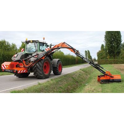 Central and high fitting of the main arm to step over street signals and guard-rail, mechanical breakaway system. Quick uncoupling to lifter.