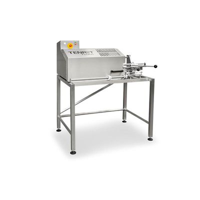 The TENRIT BSP enables clean and even peeling of butternut pumpkin by using a special grater blade which cuts to a constant depth. The pumpkin is placed and secured by hand between the drive pin and the retaining pin. After the grater is applied, the pumpkin rotates and the grater moves along the product until it is completely peeled. The blade automatically adapts to the product shape during the peeling process. The design of the machine guarantees maximum product yield. Neither water nor compressed air are needed to operate the machine.