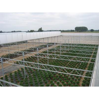 On the roof, the 3 chapels are pushed fully open on thee truss, to one side of the truss or to both sides of  the truss. So, there`s minimum one chapel on each side. This model is mainly used for cultivations that require a maximum of natural light.