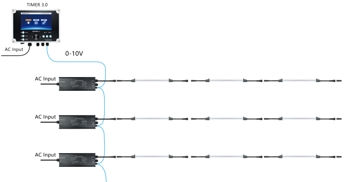 Order number: HT-T5DC04W12FB/B, HT-T5DC05W18FB/B, HT-T5DC06W18FB/B. Order detail: T6-1200mm/1500mm/1800mm-4-6W-2600K-Waterproof IP67-48Vdc-Flicker free-180degree-plug&play connection. 1200mm/1500mm/1800mm IP 67 Tube with plug& play chicken house T5 LED tube used in cages chicken farm. T5 LED tube specially design for cage chicken, IP67 T5/T6 LED tube light. Waterproof LED tube make in full PC pipe with silicone ring. Resistant to some cleaning chemicals. T5 tube with HT-PSD120WCC 0-100% to simulate sunrise and sunset. Flicker Free LED driver work with T6 LED chicken light with PWM 0Hz output, As the chickens can be visible the lights lower than 205Hz (means 205 frame / per second).