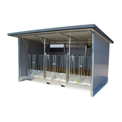The Topcalf Trio calf hutch stands for quality. The longevity of this product provides both you and your calves with optimal comfort. This hutch is equipped with lighting and electricity as standard. Moreover this calf housing is standard equipped with divisible front gates, which allows you to step into the hutch without disturbing a drinking calf. Thanks to the isolated roof and the sliding panels in the back, its very easy to control the climate inside the hutch. This Trio hutch is also equipped with removable separation walls, which allows you to turn the separate pens, into a small group housing. Like all the Topcalf calf housing solutions, the Trio calf hutch can be moved very easily by using a loader.