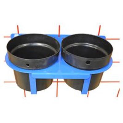 Calf Pail Hanger Assembly w/2 5 Qt. Pails. Made out of heavy 12 gauge metal. Laser cut for a perfect circle so the pails fit tight. Strap to protect the pail from getting knocked out. Powder coated for a very durable paint. The holder is very user friendly. The holder is easy to install and will not move around or get knocked off. Mount the holder on stockade panels with two U-bolts. Mount the holder on steel "T" post with one U-bolt.