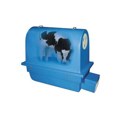 The PolyDome Calf Warmer provides a comfortable environment for newborn calves for the first few hours after birth. The top section is hinged, and removable, for calf entry. The floor is raised and slotted for easy heat circulation of the entire unit. There is a vent/peep hole on one end for proper ventilation and viewing the calf without opening the unit. The bottom is ribbed, and the front rounded, for easy transportation. The front is molded to accept an optional steel hitch for towing.