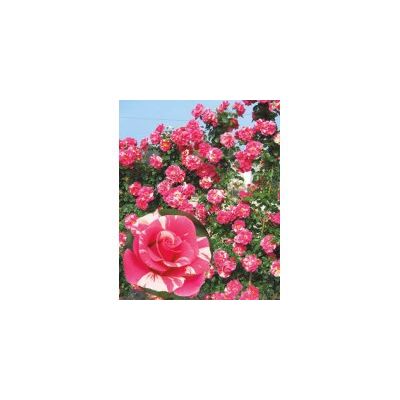 Just imagine sizable Hybrid-Tea-shaped blossoms carried in huge clusters on a very showy Climber that reblooms readily in the very first season. Now add a color that gives ‘eye candy’ a whole new meaning with swirls of impetuous pink spun with creamy ivory yellow. Top it all off with some of the most glorious gorgeous glossy foliage in rosedom – lush, clean & apple-green. Vigorous, hardy & easy-to-grow. One of our very best hybrids.