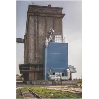 In place of dry grain, moist grain comes. During the operation of sliding the sliding shelves, the exhaust fans automatically reduce their rotation, thus reducing the amount of extracted air, which prevents the release of dirt from the settling chamber and allows them to fall automatically to the bottom of the chamber. After a while, the fans automatically increase efficiency, this process is repeated cyclically. In addition, on the settling chamber, the fans are located in a built-in chamber with silencers, which makes it one of the quietest least dusty dryers on the market.