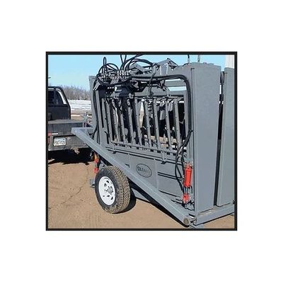 The SILENCER`s Yoke carrier is designed to transport your standard length SILENCER hydraulic squeeze chute at highway speeds using a light duty pickup. It has an outstanding ground clearance of 11 inches even with platform scales intact and is legal transport width. Highway hubs and torsion suspension provide a smooth ride, lessening shock stress to the carrier and the chute.