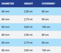 - The posts are then inserted into a stainless steel tube where the upper end is crimped so as to restrict the edge allowing rainwater coming from the top of the pole to passon the extern al surface of the pipe and slide towards the ground leaving the pole dry, ensuring the life of the pole for several decades.