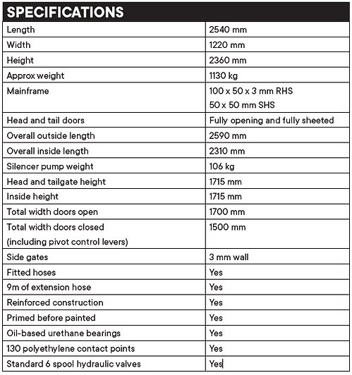 Includes a patented full-opening head and tail doors providing 660mm of clearance so full-term cows and herd bulls enter and exit the crush without restrictions on their lower bodies. Designed for a wide range of livestock sizes and weight.