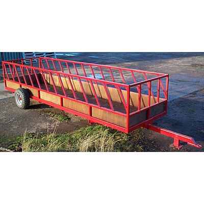 Available 14 ft, 16 ft and 20 ft long. Red trailer has wooden floor 18mm thick. Grey trailer has all steel floor 3.2mm thick.