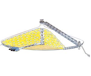 Since aeration made its debut in the 1950s, it has been the single greatest tool for keeping grain safe in storage. No more costly turning to remove hot spots. LeMar`s Temporary Commercial Grain Storage facility was designed around the new Center Tower Full Round Aeration system. The effectiveness of the Full Round System, of getting air to flow through the entire grain mass, is similar to full floor aeration in upright tanks. The perimeter walls allow outside air to enter evenly. The patented, hooded louvered openings (instead of perforations) are specifically designed to prevent blockage by grain kernels, dust and dirt in the walls and aeration plates on the tower. The unloading problems with ground tubes are eliminated.