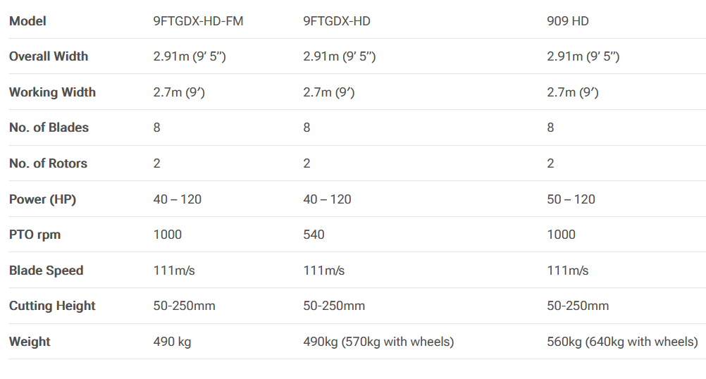 The MAJOR Centre Mounted Mulcher is a fully gear driven machine fitted with high speed rotors and twin cut swinging blades. The 909HD Topper is a heavier duty version of the 9FTGDXHD topper and features extra heavy duty gearboxes. A shearbolt PTO shaft is supplied as standard for best power transfer. There is the option available of an overrun and slip clutch PTO.
