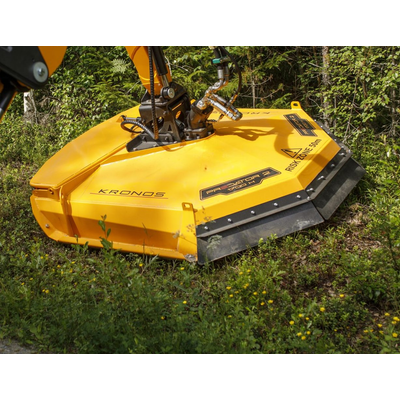 Predator 2 1700 H is a hydraulic version of kronos mulchers. It is perfect for fitting on an excavator or a forest crane, for maximum outreach and versatility. The new Predator 2 models come with a new design that includes improved front opening to maximize the cutting width and avoid larger trees falling on the tractor. The slide rails are now interchangeable and bolt-on design. The cutting head edges are also more rounder for a smoother drive on the ground.