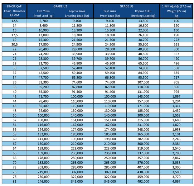 Mooring systems in the fixing element (chain or vault) is a product used between rope. The main task of the chain is to keep the fixing element in line with the continuous floor and help to secure the mooring by its weight. The size and weight of the chain to be used should be at least the weight of the fixing element. In high-risk mooring systems, this ratio should be increased to 1.5 times or even twice. The fuse of the fastening element is a chain. In order to reduce the investment costs of the chain to be used, the strength values can be obtained from the ship dismantling facilities without being below 80%. The links between the float and the collector are also used in the connection between the cage and the mooring, except for the connection of the fixing element.