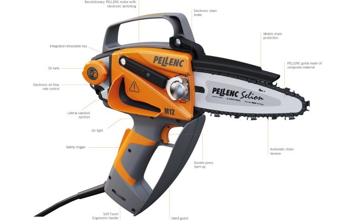 - PELLENC Brushless electric motor—frictionless, very high efficiency, maintenance-free.