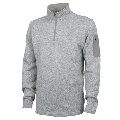 100% polyester sweater fleece. Brushed on the inside for added softness and warmth. Yarn-dyed to produce a unique heathered appearance. Knit binding adds a unique design detail. Welded zippered pocket on left sleeve. Ideal multi-seasonal transitional piece. Quarter-zip pullover design for bulk free all day comfort.