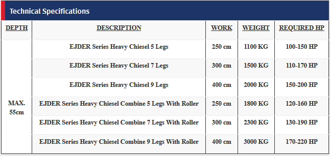 In the requirement of breaking the “plow-pan”, “natural-pan” or “traffic pan” at the soil we need to work deeper. EJDER and KUNDUZ series Chiesels are used on 30-55cm depth of the soil to break the “pan” and also this would improve the capillarity and aeration of the soil. Highly constructed chasis (80 cm clearance from ground level) ensures the prohibition of “soil collecting” problem on high speed of work.