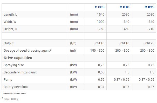 During product design, special attention was given to the independent seed dosage and chemical agent dispersion. In the synchronized and extremely precise chemical treatment process the individual grain characteristics are of little importance. The seed is volumetrically metered over the hopper into the generously sized spraying chamber. An even product flow into the spraying chamber is ensured by means of a rotary valve with specially beveled cells. In the spraying chamber the seeds are sprayed by using a rotating distribution disc which creates an even product veil making it possible to achieve a constant and uniform coating without blind spots even at a high throughput rate. The treating agent is sprayed in a fine mist below the distribution disc, surrounding the product and ensuring an even coating. In the second mixing chamber, the seeds are thoroughly and intensively yet gently mixed using a back and forth agitating motion from the mixing paddles. A user friendly touch panel makes operating the machine easier and controls the complete treating process.