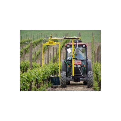 This innovative equipment obtained the prestigious Technical Innovations Contest award at the 2005 EIMA fair. The chemical desuckering machine mod.116 is suitable for desuckering vineyards with espalier training systems. It carries out this task by applying a liquid containing a drying solution to the lower part of the plant, below the fruit-bearing branches, thus wetting the suckers and drying them out completely. It is applied to the front of the tractor and carries out the operation on the row to the right of the tractor.The effective height for working from the ground may vary from 500 mm to 800 mm depending on the working height of the liquid delivery head. The working head of the Chemical Desuckering machine mod. 116 is pendulum mounted and supported by a framework whose position can be determined by the tractor driver by means of vertical and horizontal hydraulic movements.