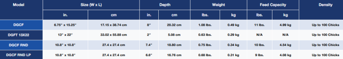 The DURA-GRO Chick Feeder is the premier feeder for transitioning chicks to an automated pan. Our oval design allows for larger space between pans while our round model makes it easier to maintain consistent feed level. Each feeder will accommodate up to 100 birds. The feeders are recommended for chicks from day 1 though day 12, when birds reach the size that allows feeding from the automated pans.