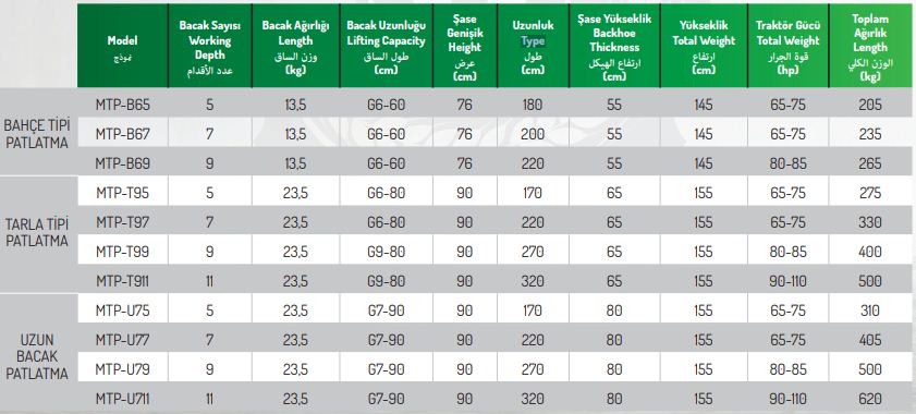 Model : MTP-B65. Working : 5. Depth : 13,5 . Lifting Capacity : G6-60. Height : 76. Height : 55 . Type : 180. Total Weight : 145. Total Weight : 65-75 . Length : 205.