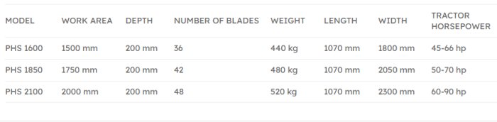 - The movement transfers from tractor’s rear axle to blades with dear transmission system.