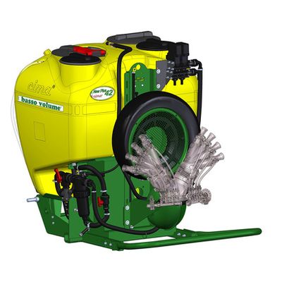 The 3-point mounted low volume sprayer model New Plus 42 , with pneumatic atomization based on the "Venturi Tube" principle, performs chemical treatments with a low volume of water. Heavy and compact, precise in the applications of the quantities of chemicals, it works easily on the uneven grounds and guarantees high operation autonomy. Maximum performance with low operating costs and low maintenance. This sprayer is very unique in the market with hand-washing and spray-line rinsing tanks included into the main tank, and with two mixing agitations systems ( hydraulic/pneumatic).