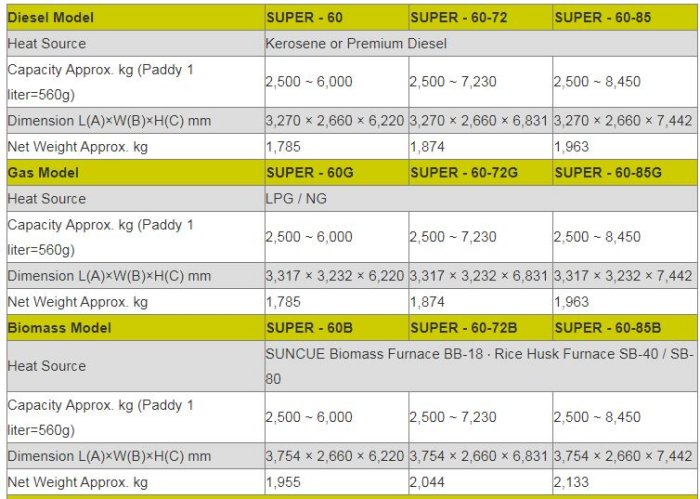 - By using self-milled free rice husk, users no longer need to spend on diesel, natural gas or electricty as dryers` heat sources.