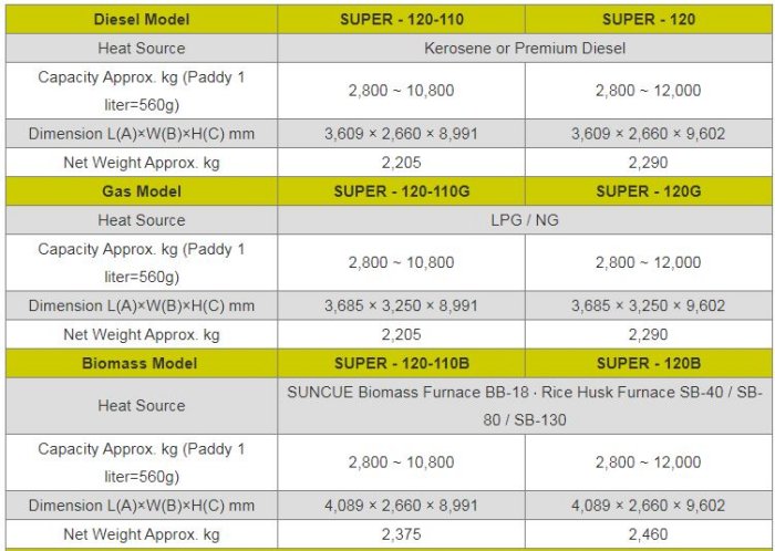 SUNCUE Grain Dryer: The low-temp., even and speedy drying minimizes broken rice, raises milling rate and produces beautiful rice. Rice husk as a biomass fuel option minimizes drying cost.