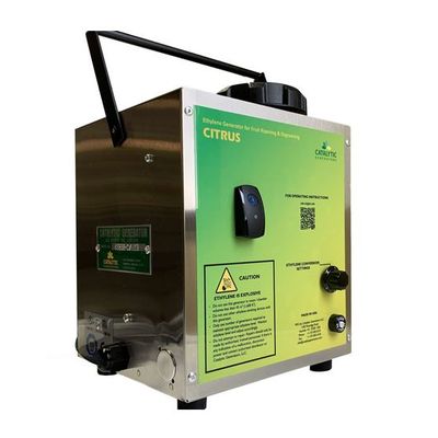 Designed with safety and efficiency in mind, our Citrus Ethylene Generator emits ethylene in continuous, safe and small amounts to maintain the proper low ethylene concentrations for uniform degreening. Repeatable over many use cycles, the performance of our generators makes ethylene application the easiest part of the degreening process..