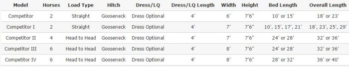 The absolute ultimate in straight-load trailers, the all-aluminum Competitor is fully custom, with an amazing number of options for both riding and driving horses. With Jamco’s QuickChange™ post and divider system, these trailers may be changed from day to day to a multitude of configurations, depending on the size you choose. For example, the six horse Competitor III with optional box stall dividers may be configured with up to three horses in the front, and a vehicle (an ATV, golf cart, etc.) in the back which can then become a cross tie area or box stall upon arrival. The Competitor allows for a choice of width, height and length, and carries a seven year frame warranty and twenty year pro-rated warranty on plank walls.