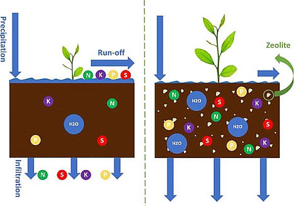 - As compound fertilizer additive, become zeolite fertilizer. Practical application datas show that the compound fertilizer made of Zeolite and chemical fertilizer can reduce the loss of effective nutrient elements. According to the field performance of oil palm fruit tree, the results of 10% - 15% of traditional chemical fertilizer is needed for zeolite fertilizer from 2002 to 2012, but the 11% increase in fruit yield not only greatly reduced the load on the soil of the oil palm plantation, but also saved the grower a lot of money due to the high cost of ineffective fertilization. When applied to economic fruit trees, the physiological characters of banana, such as photosynthetic rate and chlorophyll content, were increased by more than 75% and yield 26% respectively. For field crop maize, the above field growth index also improved by 18% , and the yield increased by 20%.