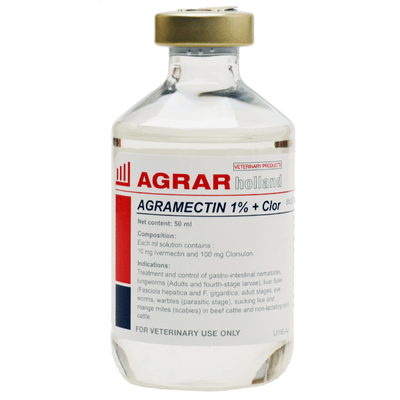 Agramectin 1% + Clor is a combination preparation containing Ivermectine active against parasitic nematodes, arachnids and Clorsulon which is a sulphonamide acting primarily against adult and immature liver flukes.