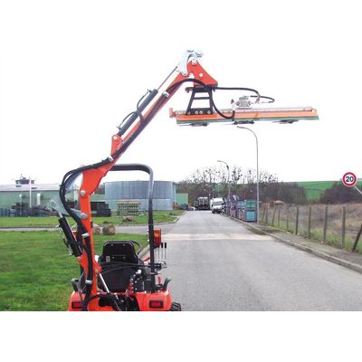 Hydraulic hedge trimmer adaptable to tractor from 16hp.The VIPER hydraulic hedge trimmer has been designed to trim field hedges, hornbeam hedges and cedars. A robust hedge trimmer mounted behind compact tractors or micro tractors from 16hp. Fitted as standard with a 1m20 long rotating cutter bar, it does not clog and easily ejects pruning rejects above the hedge. The VIPER pruner will also be effective for pruning fruit trees. Characteristics Adaptation in 3 rear points Teleflex cable control Hydraulic power unit as standard Vertical cutting height: 4230 mm Horizontal cutting height: 2680 mm Offset on the right side: 2000 mm Cutting width: 1 m 20 Floating safety on the cutter bar in the event of light effort Maximum cutting diameter: 30 mm Weight: 250 kg