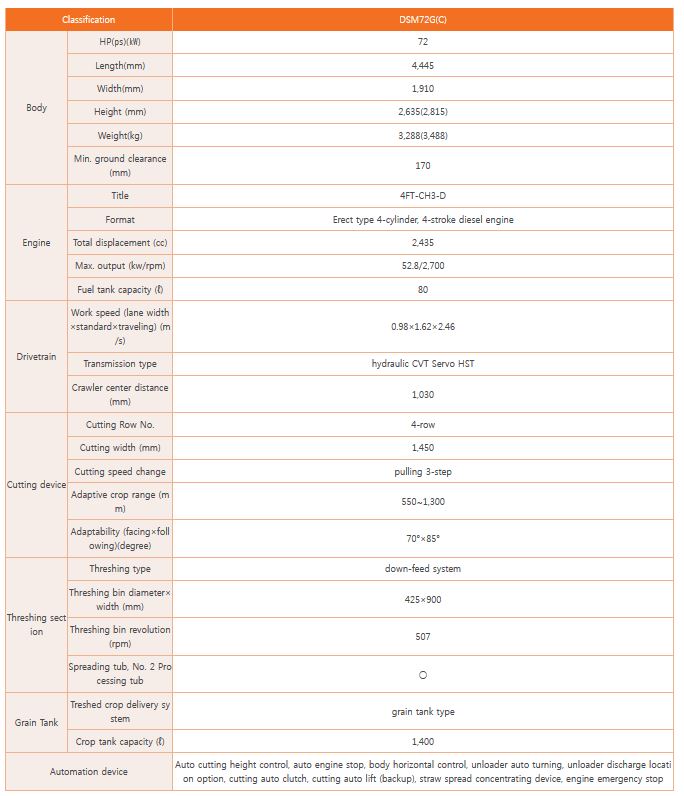 Balanced cutting, threshing, and fast, convenient harvesting process. 4-row combine-harvester of the most convenient maintenance - DSM72G(C)