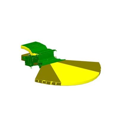 A specially designed chaff spreader throws the chaff into the straw flow at the chopper tailboard (Figure 1). By adding the airflow from thechaff spreader to the airflow from the chopper, the mixed husk can be spread evenly over a width of over 12 m(40 ft). The actual spreading width is determined by the speed of the chaff discs. When the straw is swathed, the chaff is spread to the sides without the chopper running.
