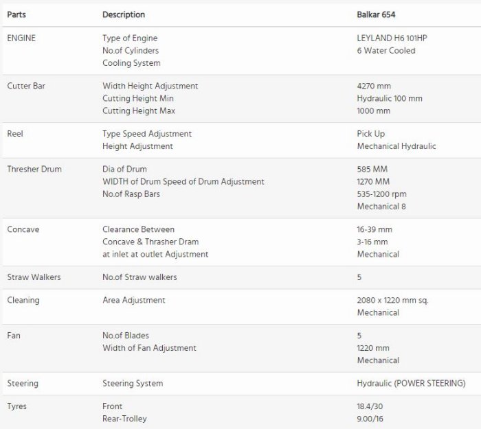 Optional Auto-Hydraulic Grain unloading Auger. Optional Gear Box with 4/5/6 speeds. Stainless Steel Elevator railings. Single sheet Reel bar plate. Step type Wide Straw Walker. 350 Liters Capacity Diesel Tank. High crop Cleanliness. Large Sieve Area. Hydraulic Power Steering. Good Turning Radius in fields. Suitable for Multigrain like Wheat, Paddy, Soybean, Sunflower, Mustard & Grams. Robust Heavy Chassis. Disk Brakes or Big Brake Drums. Attractive Graphics & Looks. Economical and efficient operations.