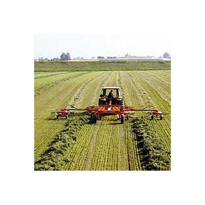 The rake model SUPER BIG 1000 is ideal for large harvests and big-sized fields and is suitable for both hay and straw. Not only does it guarantee perfect and careful central windrowing, but also double windrowing, windrow tedding, cam spreading and gathering of two windrows into a central one when fodder quantity is lower. Its unique feature of 10.50 m windrowing useful width allows to save time, yet assuring perfect cleaning results and utmost collection care. Its construction flexibility allows the use of just half of the machine, if needed, by setting the other half in vertical position and still ensuring correct operation. It is equipped with 3 point linkage, four 8-arm rotors with three shot-peened springs per arm. It fits steel cams and rollers, tandem wheels with height adjuster screw, hydraulic cylinders controlling the opening movement; CE-approved protections, Cardan, pins, rear lighting system, reflector panels.