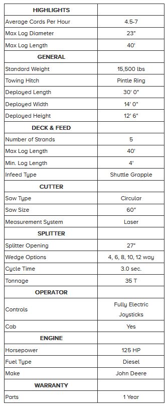 If you make your living selling firewood, look no further. Produce firewood faster than ever with the 2040XP2. The 2040XP2 is Multitek`s flagship processor. Built to handle the most crooked and difficult logs in the world, the 2040XP2 showcases versatility and speed. Using Multitek`s patented shuttle grapple, the 2040XP2 can process low-grade logs up to a blistering 7 cords per hour. If you`re a firewood professional, don`t settle. The 2040XP2 sets the world industry standard for speed, durability, and capability.